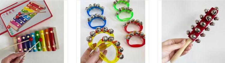 Такі інструменти часто використовують у школах раннього розвитку та студіях, які працюють за методикою Монтессорі. Вони сприяють розвитку тактильних відчуттів, координації рухів і вміння контролювати ритм. Коли малюк самостійно створює звук, він бачить результат власних дій, що стимулює розвиток самостійності.