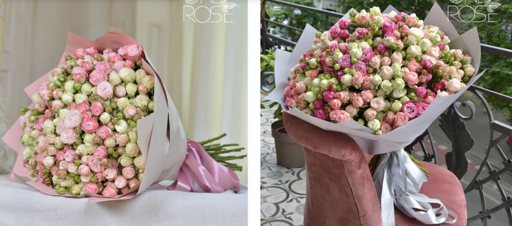 • Фотографии и описание. Выбирайте букеты, где указаны сорт, длина стебля, цвет и примерный диаметр бутона. Это даёт представление о том, как будет выглядеть композиция.