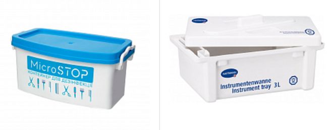 Це ключовий етап дезінфекції. Ємність має бути герметичною, виготовленою з пластику або нержавіючої сталі, з кришкою й вкладкою-решіткою для зручності.